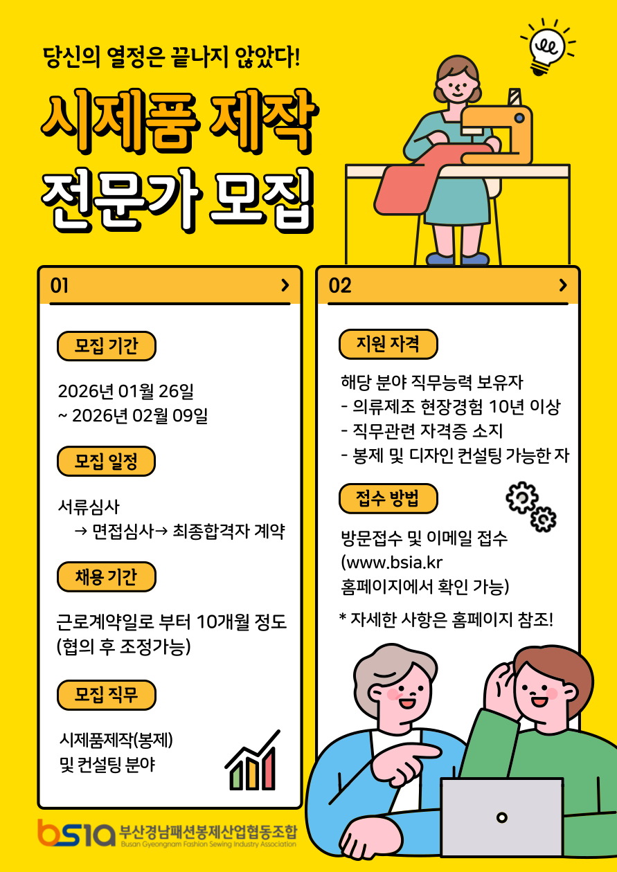 [공지] [2025 부산서동의류제조지원센터] 시제품제작 전문가 공개채용 공고
